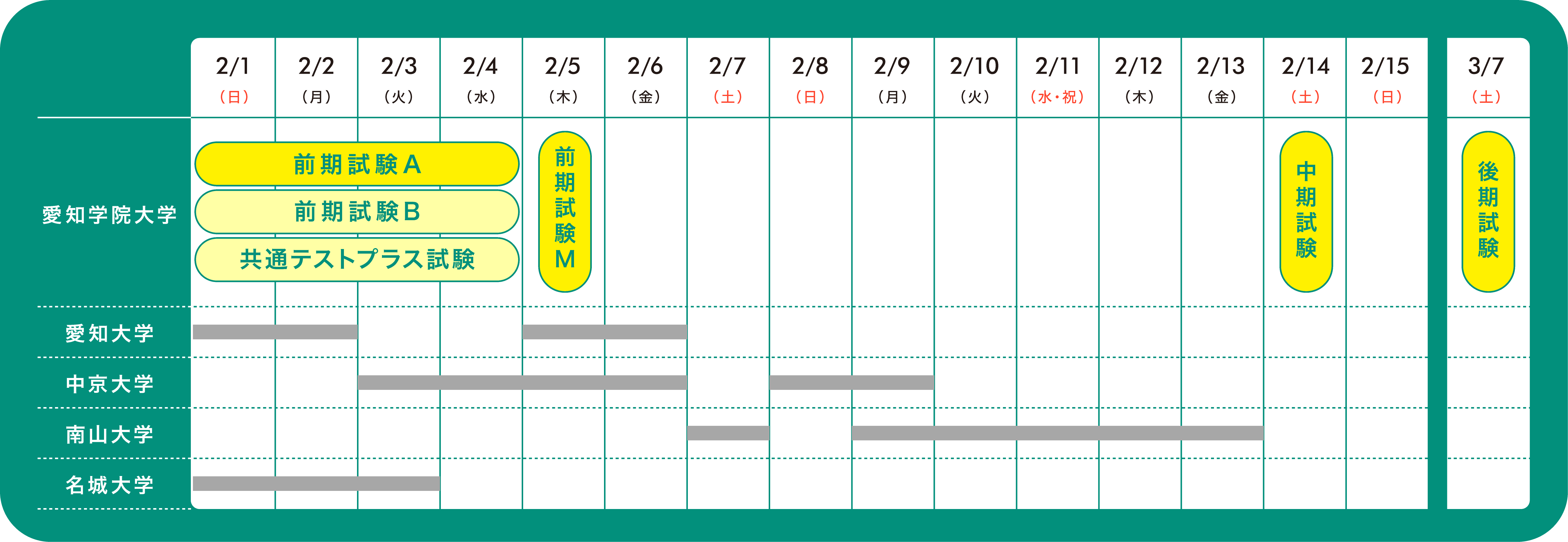 試験日 2/1(日)、2(月)、3(火)、4(水)