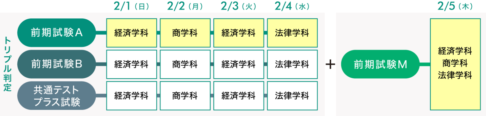 前期試験Aは4日間、前期試験Mも合わせれば5日間の受験が可能。