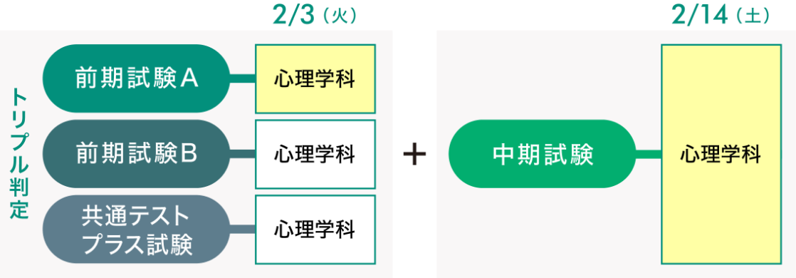 心理学部、健康科学部は日程により「文系得意型」と「理系得意型」を選ぶことができます。