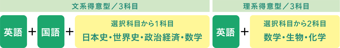 少ない負担で幅広い学科に挑戦可能。国公立大学を併願する方にもオススメです。