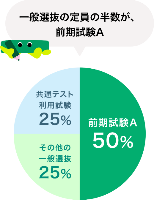 学力試験のみで合否判定。募集定員が最も多く、1回の受験で複数回判定できる制度あり。